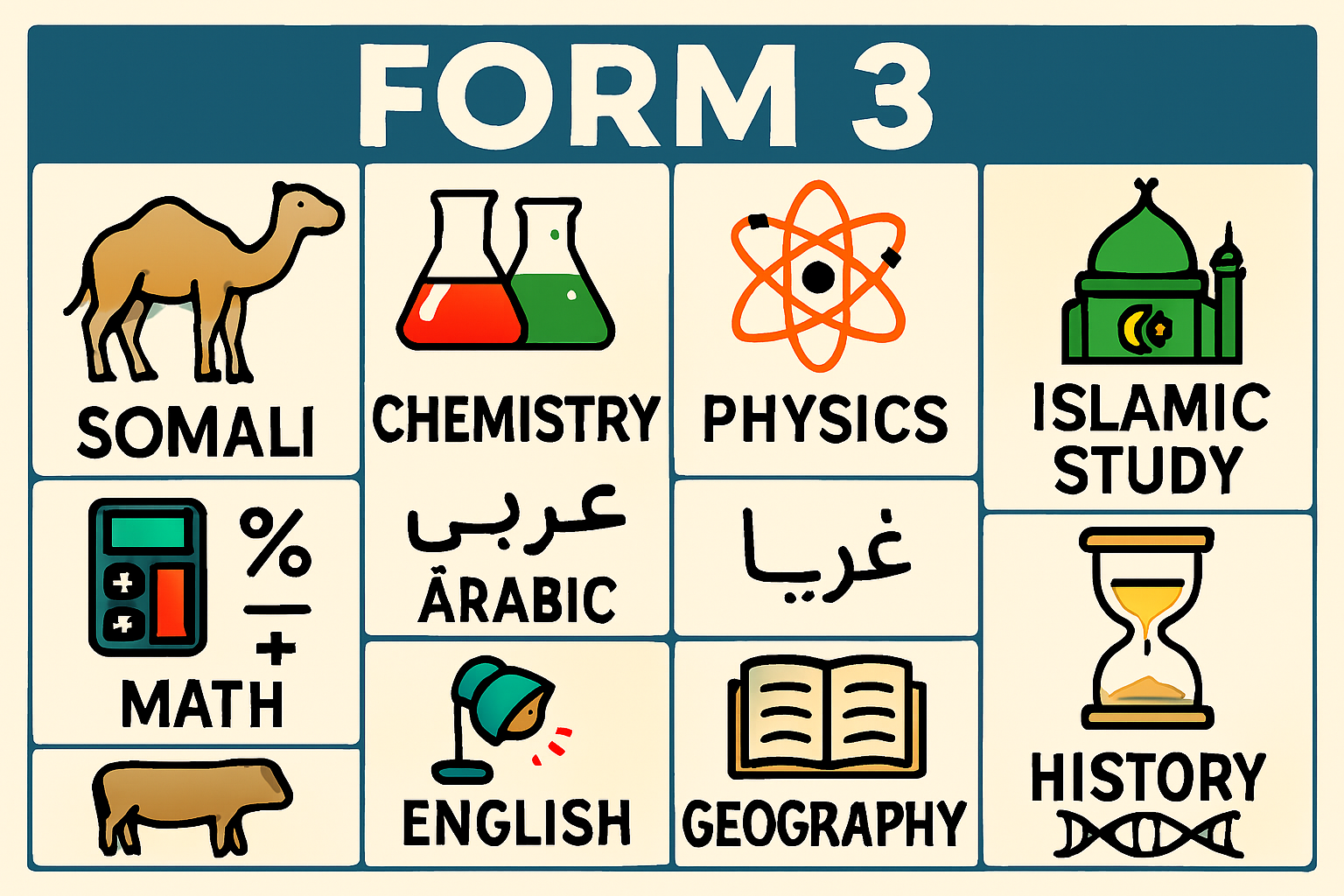 Halkan waxad ka heli dhamaan maadooyinka Form Three ka